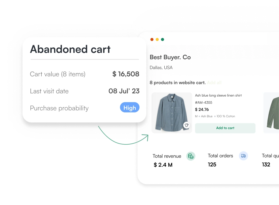 Enable sales reps to get notified of abandoned carts & reach out to customers to complete checkout
