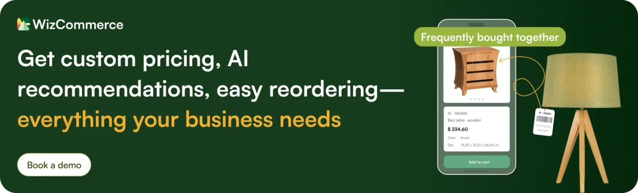 WizCommerce is an AI-powered B2B ecommerce platform built specifically for wholesalers, manufacturers, and distributors. Unlike general-purpose ecommerce platforms, WizCommerce is tailored to handle the complexities of bulk ordering, custom pricing, and seamless buyer management—without the need for additional plugins or expensive customizations.