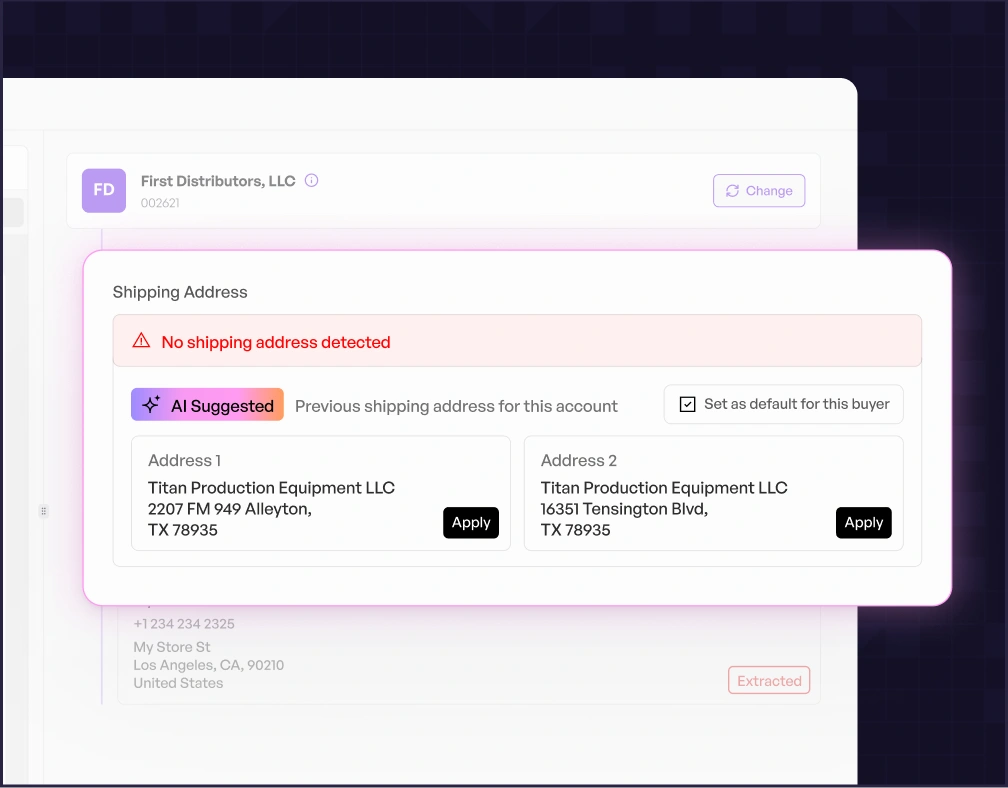Small wholesale businesses can use AI for order entry by automating the most time-consuming operational work — reading POs, entering orders, and fixing errors. An AI Order Entry Assistant allows smaller teams to process orders faster, reduce mistakes, and scale operations without hiring additional administrative staff, while staying fully aligned with their ERP.