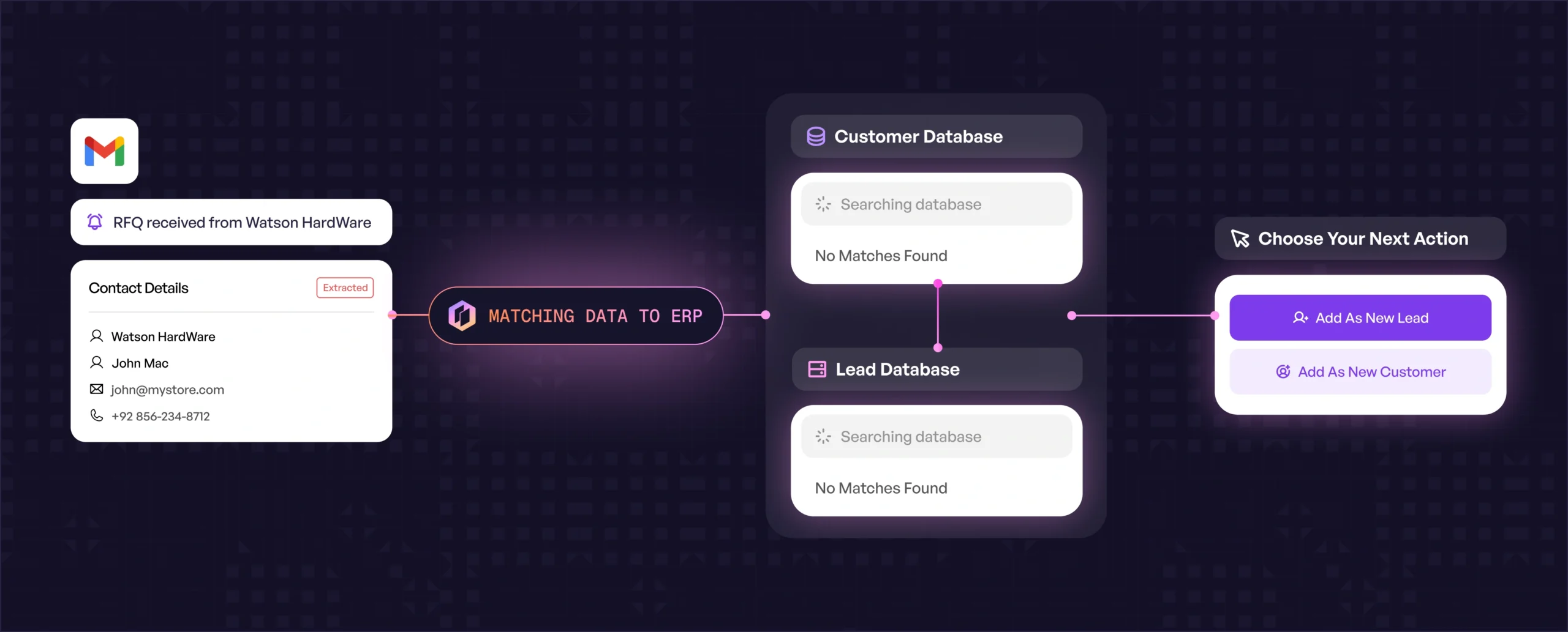 Understands whether the RFQ is coming from a new lead or an existing customer—so the right price lists, contracts, and quote rules are applied automatically.