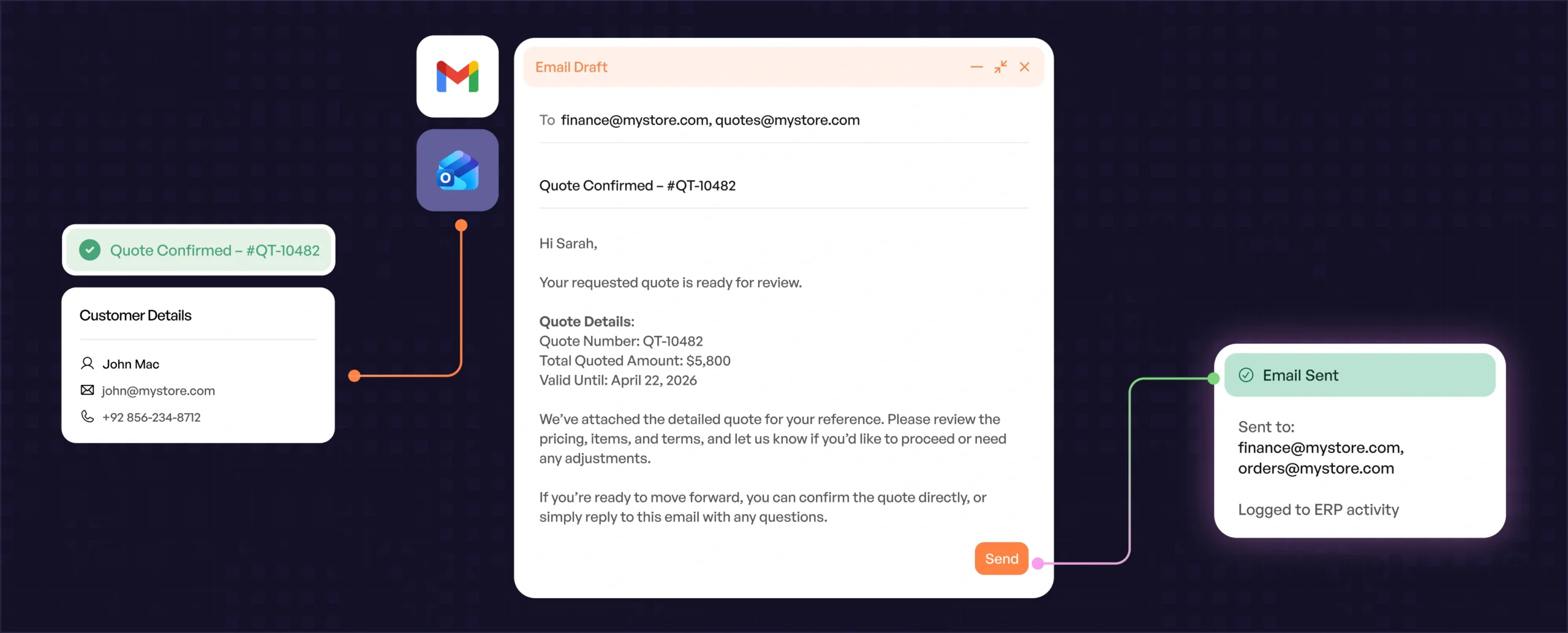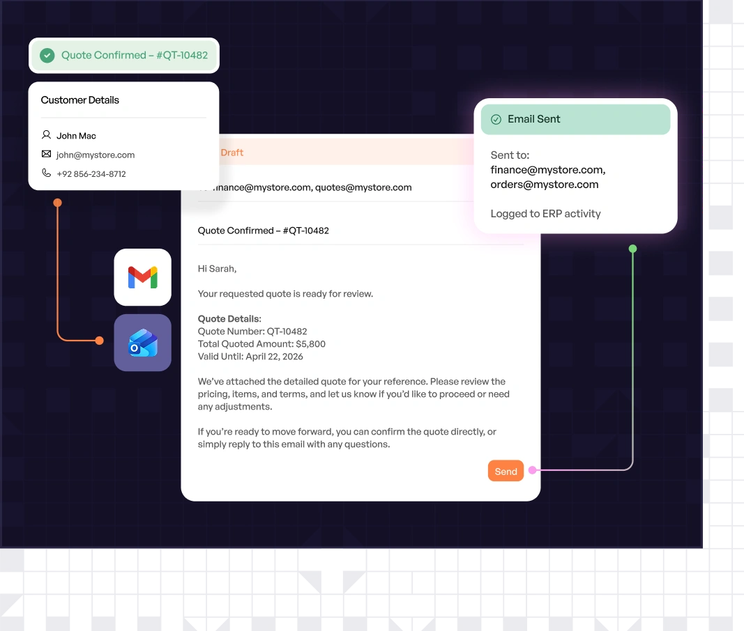Prepares and sends quotes to the appropriate email recipients—so sales teams can respond faster and keep deals moving.
