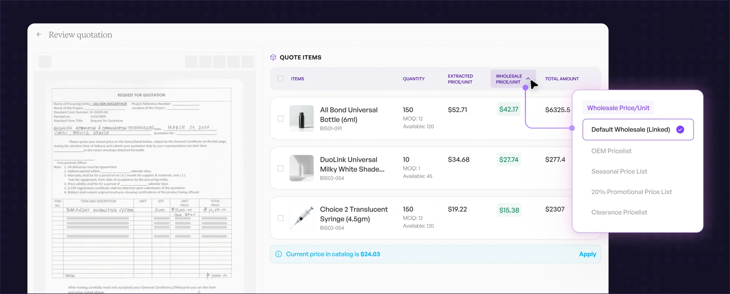 Modern wholesale quoting demands speed and accuracy