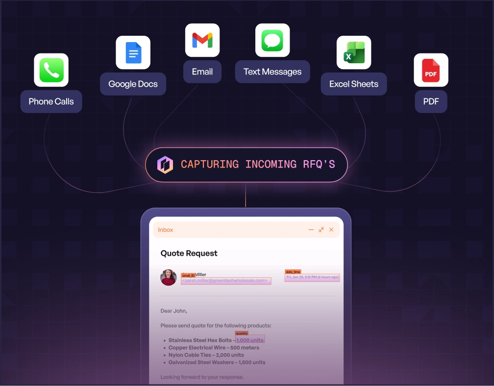 Turn inbound RFQs into sales-ready quotes—automatically.