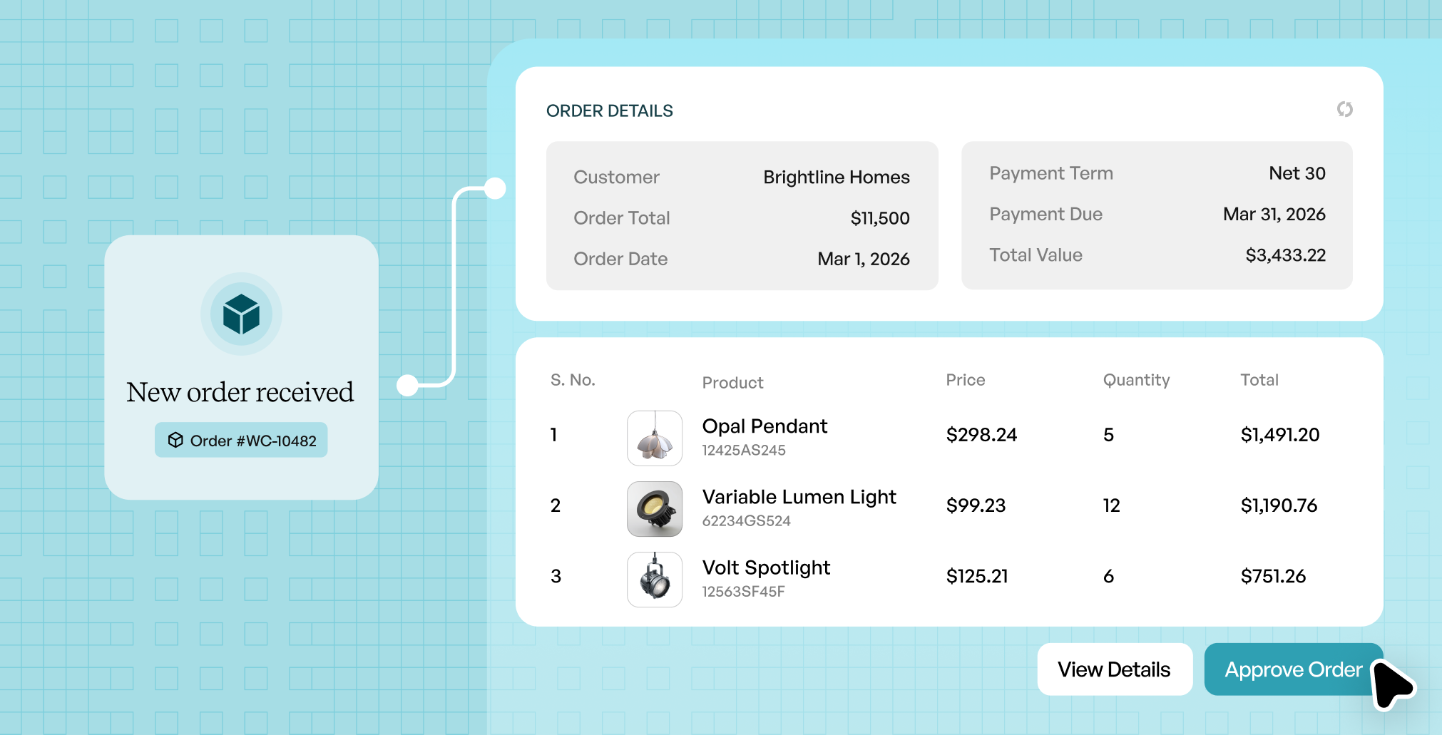 Review and approve online orders instantly, with automatic ERP sync and real-time updates for your team.