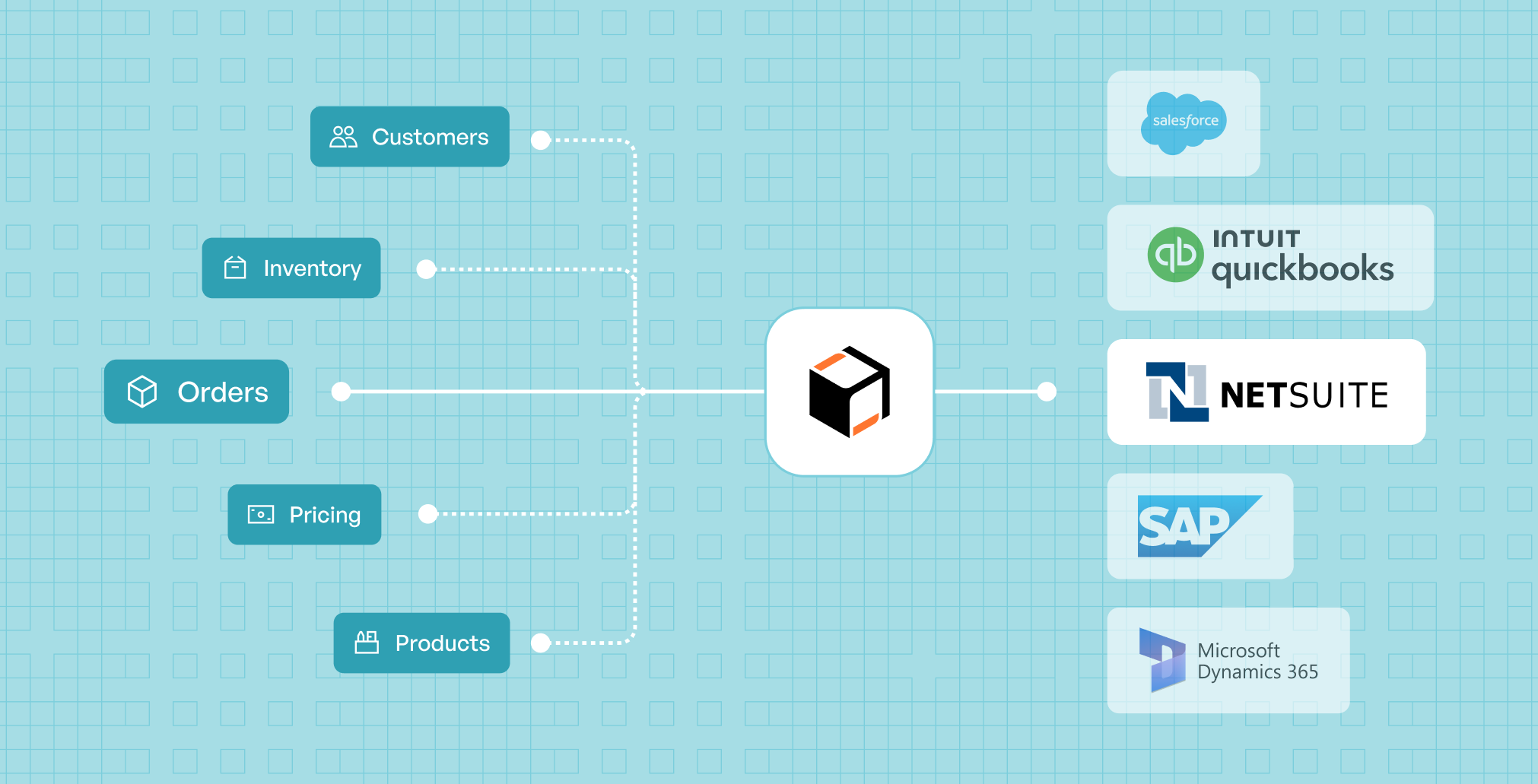 Send approved orders to your ERP instantly and keep pricing, inventory, and product data synced automatically across your storefront.
