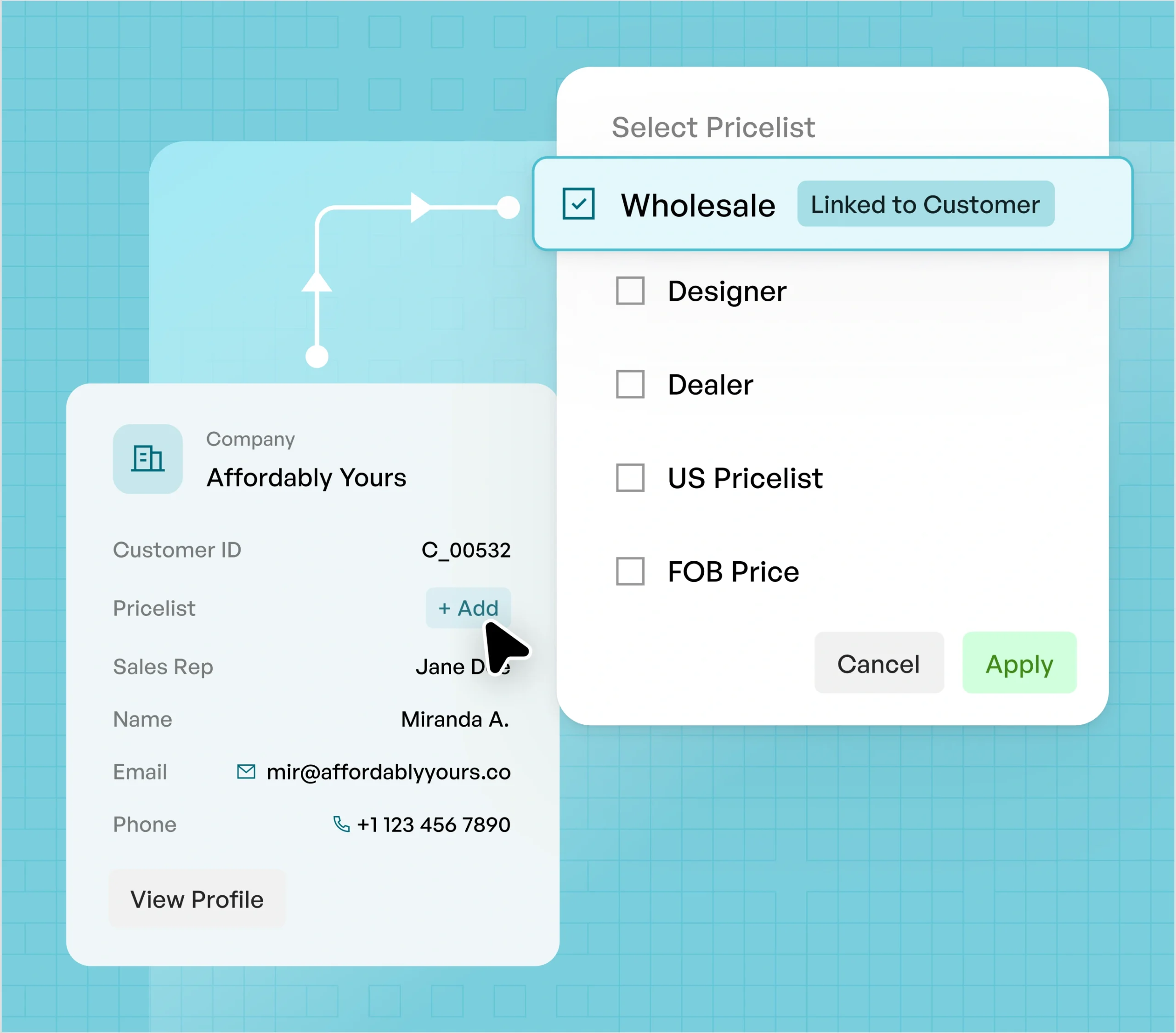 Assign each buyer a custom price list based on your business rules—whether by region, channel, volume, contract pricing, or any parameters you define.