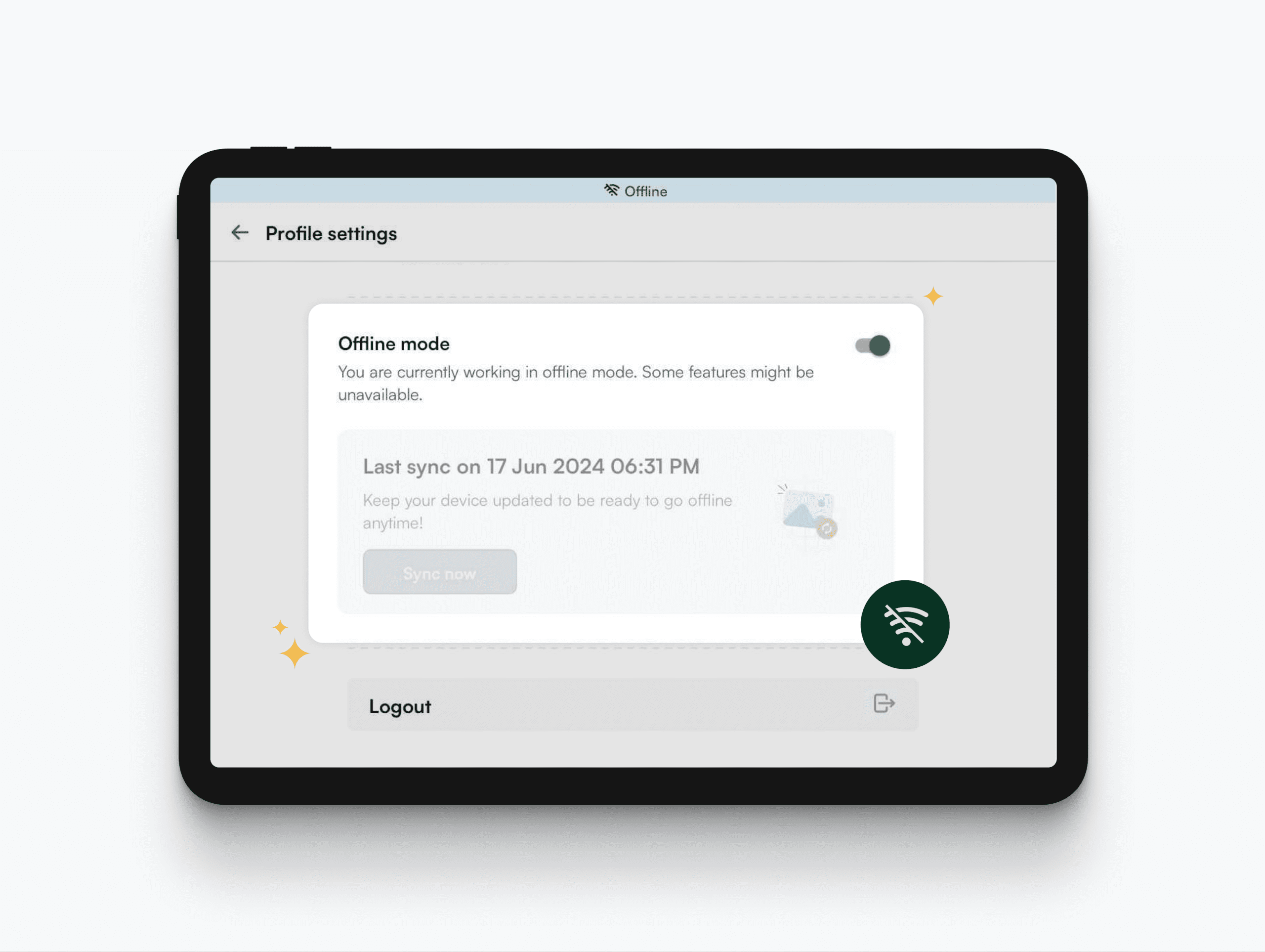 Now, once you’re back online, turn the offline mode toggle off, and all your orders will be synced with the system. To do this, go to the profile icon again and flip the toggle to exit the offline mode.